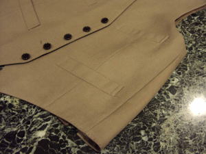 ベストの脇を外して、そこに慎重に生地と裏地を裁断し直して周りと違和感がでないように作成。簡単に見えるけれども、オーダー技術があればこそ美しく出来る