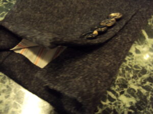 での最高級ブランド。このシングルのジャケットも袖はボタンも無い、完全未調整タイプそこで本開き本切羽にすべく作成する、しかも機械ではなく「オーダー職人」が手作業で一目一目針と糸で開けていくタイプをチョイス!