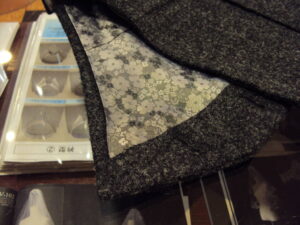 裏地にはオーダーメイド専用のキュプラの桜柄で表に比べて可愛い柄がアクセントになっている。