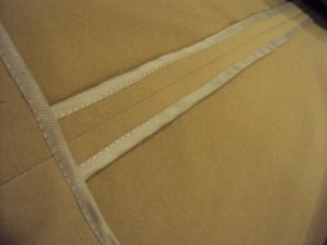 もちろん裏地の余計なパーツを外したりカットするのだけれども、残す見えるところの裏地の位置や始末を配慮。後付けのパイピング処理や加工の技術でしっかり手間をかけて作り上げていく。