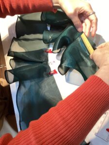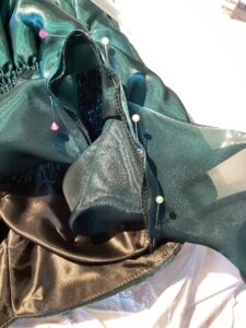 すそから切り取った生地でひだを寄せたりドレープを作ってみて。限られた生地なのでいかに上手く見せれるかが勝負の一つかも!