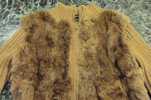 前身頃部分についているファーを使う!ニットカーディガン用のファーだから厚さが少し薄いことと、毛並みを揃えることがちょっと至難かも。厚い綿生地を型にして側形成し、内側は裏地にて作製することに
