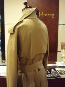 あの時代、この位大きいラグラン肩や身幅が普通だった記憶があり。今振り帰ってみると不思議にも感じるけれど。状態が良ければ、またはコートに想い入れがあれば、コストを掛けても蘇る価値は大かも!後ろ姿のラグラン肩や袖下の何て大きいこと