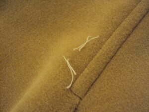 そこでリバイバル最終兵器の「かけはぎ かけつぎ」で対応して想いを復活すべく出来る限りで!!!起毛している生地は目立たない個所から毛を剥いで、ダメージ穴部分に綺麗に差し込んで縫い込んでいく特殊技!!