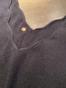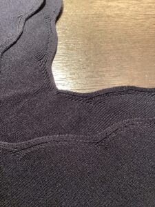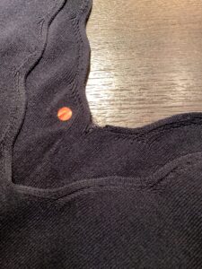 NOBLEのニット!背中のVゾーン辺りに糸も切れて破れダメージが!!!ルアーヴルのカケハギはパンツやスーツやコートだけでなくこのようなニットでも超有効!リバイバル最終兵器の「かけはぎ かけつぎ」でノーブルニットの修復を目指す!!!