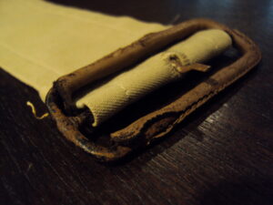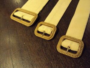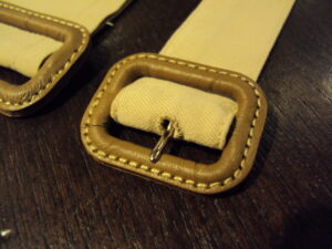 経年劣化のバーバリーの「ウエストベルト」のレザーバックル!そして「袖ベルト」のレザーバックル。何らかの方法でこの破れた皮を張替えも良いけど、何年も触ってきた場所だしこれを機にバックル毎綺麗に新品に交換もありと。